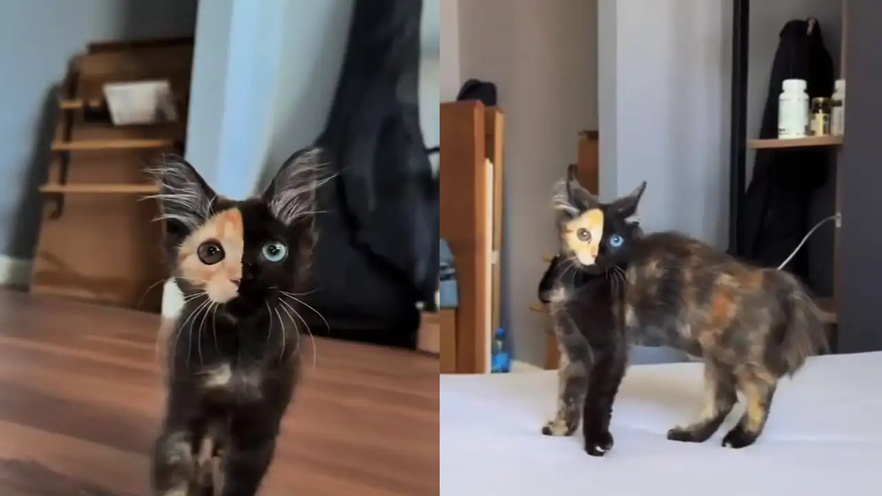 Интернет взорвал котейка, который похоже не смог определиться в детстве, кем хочет быть: рыжим хулиганом или готичным аристократом. Похоже, что в итоге он выбрал оба варианта, поделив свою мордашку четко пополам. А разные глаза — это просто следствие внутреннего конфликта.