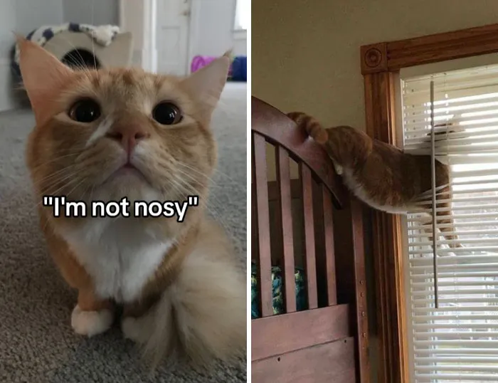Домашние животные — очень любопытные создания. От кошек, скрывающихся за занавесками, до собак, высматривающих каждое движение соседей через забор, наши пушистые друзья нередко проявляют неподдельный интерес к тому, что происходит за пределами их дома. В этой подборке мы собрали самые забавные снимки питомцев, которые не могут сдержать свое любопытство, но их это нисколько не смущает.