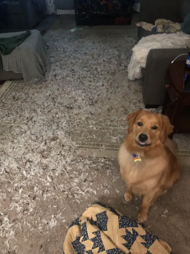 «Угадайте, кто совершенно случайно попал в тарелку со спагетти?»@reddit/AutomaticBordera«Она была так горда».@reddit/OBBlue22«Моя собака, когда она была щенком. Она была очень виноватым щенком».@reddit«Она съела ботинок».@reddit/KitCat161«Я ничего не знаю о пропавшей губке».@reddit/Pretend_Panda«Мама, слава богу, ты дома. Горшки взорвались!»@reddit«Я нашёл лежанку такой!»@reddit«Послушай, я знаю, как это выглядит, но я милый, так что это не мог быть я».@reddit/thegreatlemonparade«Ответ Даррелла на мой вопрос: "Что это?"»@reddit/missfreshour«Задержан вор носков».@reddit/msellipsis