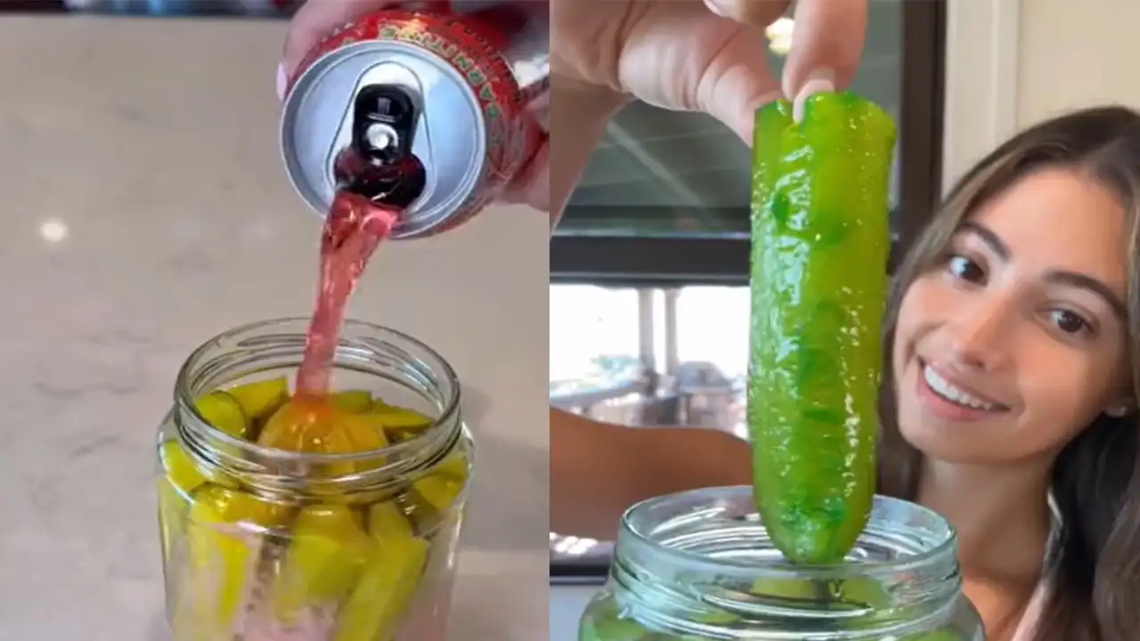 Автор этого видео устроила на кухне настоящий химический эксперимент — замариновала огурцы в энергетике Monster Energy. Результат выглядит так, будто овощи провалялись в радиоактивной луже — их обычный цвет сменился кислотно-неоновым оттенком, больше подходящим для комиксов, чем для реальности.