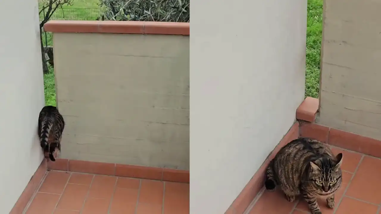 Этот котик стал звездой благодаря своей милой неуклюжести. Он пытается просочиться в узкое пространство между двумя перегородками, но его пузико оказывается слишком большим для этого маневра. Смешные попытки кота, который старается изо всех сил, вызывают умиление и смех у зрителей.