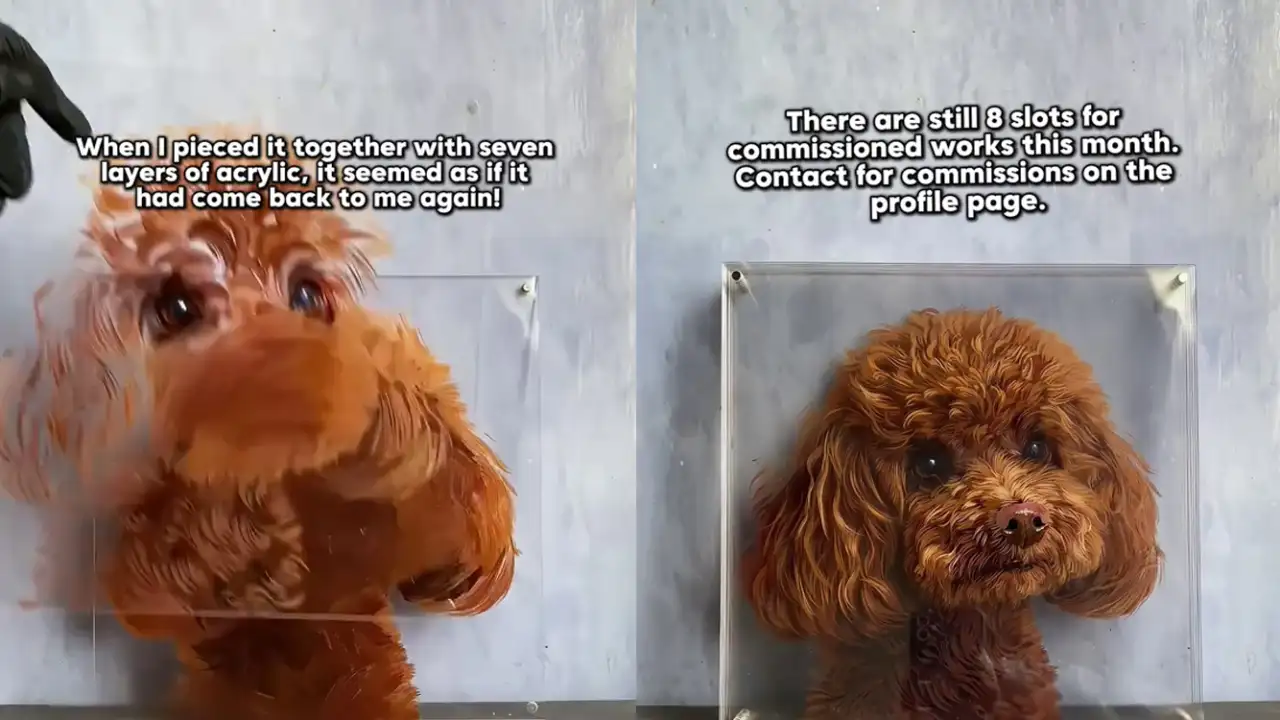 Каждое движение рук мастерски подчеркивает детали, а зрители восхищаются тем, как простые стеклянные поверхности превращаются в настоящие произведения искусства. В конце видео зрители могут увидеть финальный результат — потрясающую 3D-картину.