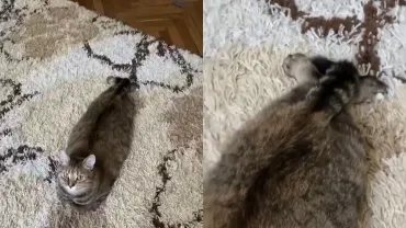 «Я теперь тюлень»: необычная поза лежащего котика рассмешила интернет