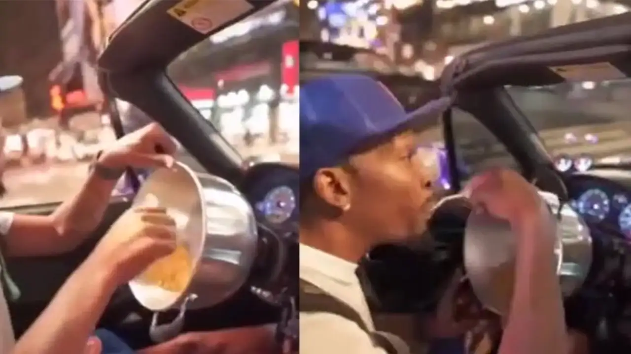 На фоне всего этого абсурда парень остается невозмутимым, будто всегда так и ездил — завтрак в салоне, обед на ходу, ужин, вероятно, на развороте. Если вы думали, что мультизадачность — это про совмещение звонка и кофе, то этот водитель точно вас переубедит.