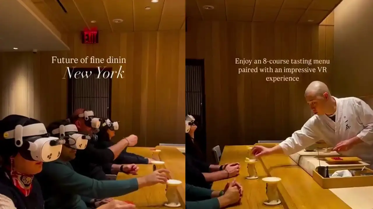 Ресторан EPIC NOW в Нью-Йорке предлагает уникальный опыт — виртуальную реальность во время еды. Посетители надевают VR-шлемы и погружаются в другие миры, наслаждаясь изысканной кухней в необычных обстановках. Видео демонстрирует реакцию гостей на этот новый формат: восторг, удивление и радость от сочетания технологий и гастрономии.