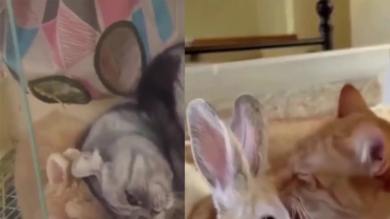 Ранее кот шокировал пушистого брата своей любовью к кролику.