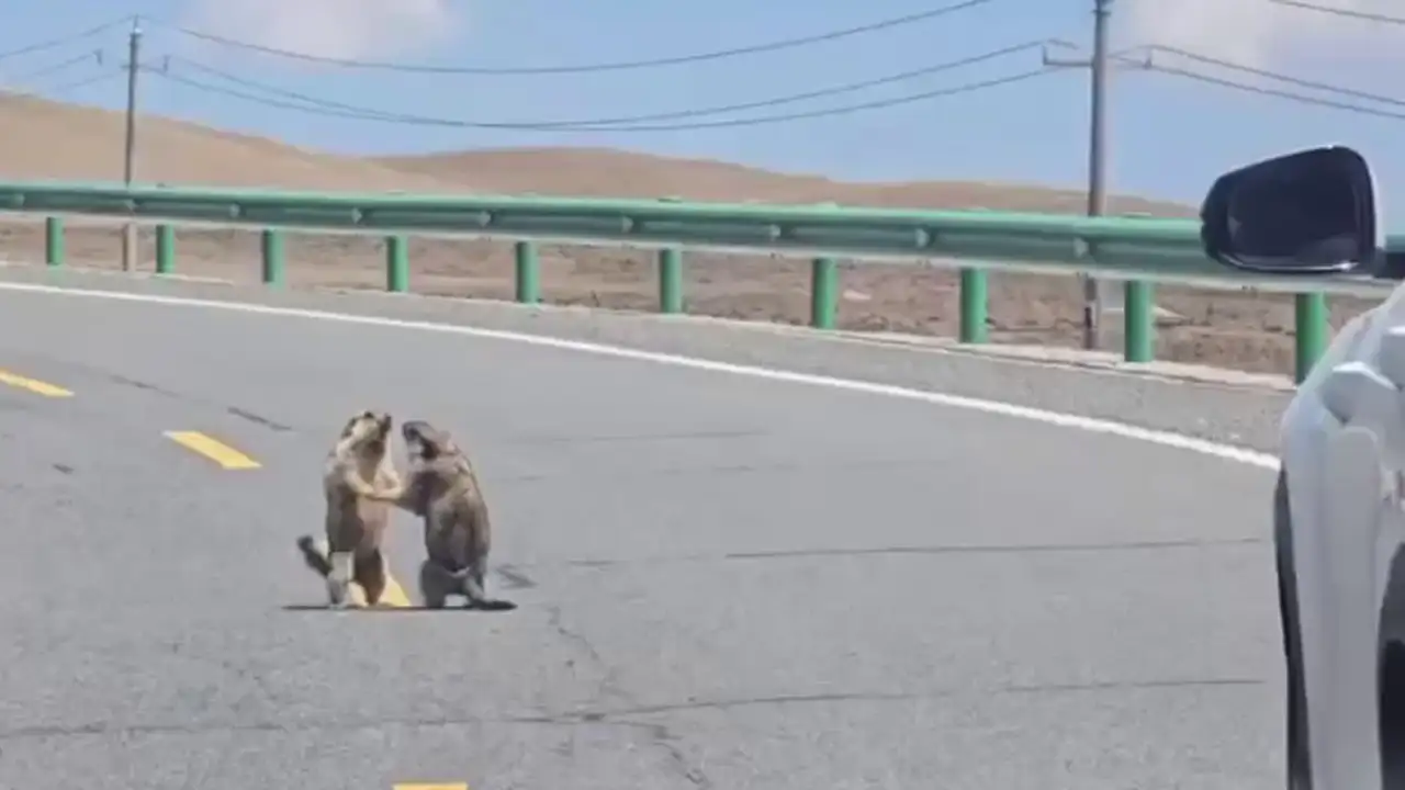 В этом видео парочка сурков решает выяснить отношения прямо посреди дороги в Китае, перекрывая путь автомобилям. Их забавная борьба привлекает внимание водителей и прохожих.