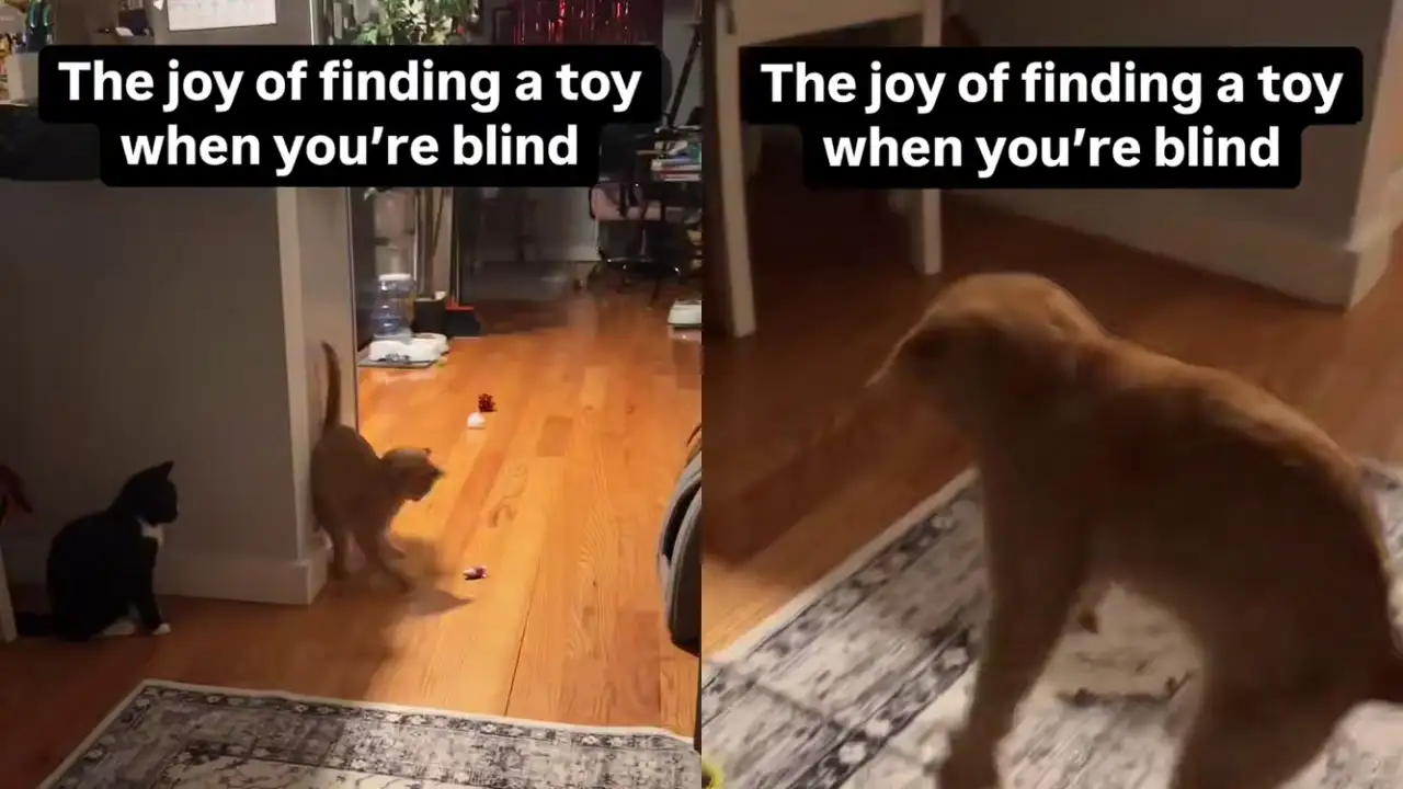 В этом видео хозяйка слепого кота показывает, как ее питомец весело играет с игрушками. Несмотря на отсутствие зрения, кот проявляет невероятную ловкость и смекалку, ориентируясь на звуки и текстуры. Он ловко прыгает, переворачивает игрушки и даже пытается «поймать» их, используя свои другие чувства.