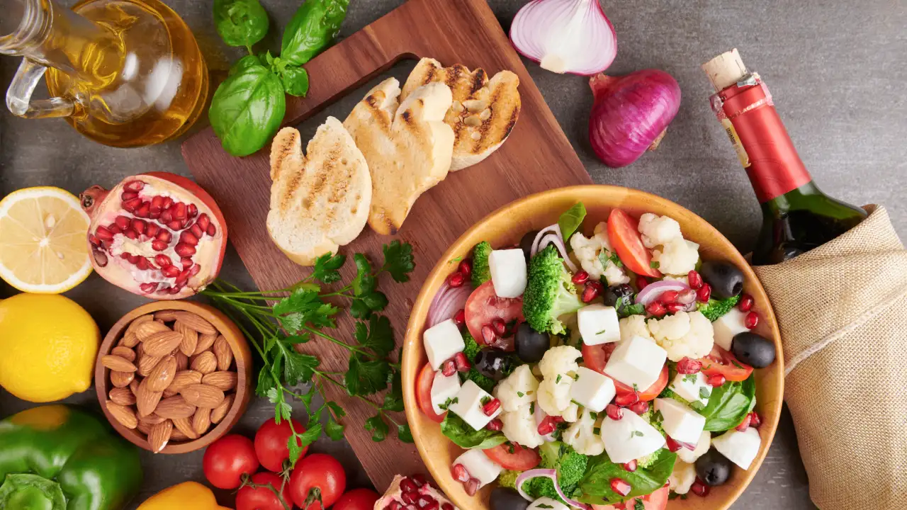 Средиземноморский рацион включает овощи, фрукты, орехи, цельнозерновые продукты, рыбу и оливковое масло первого отжима. Эти продукты богаты антиоксидантами и полифенолами, которые снижают окислительный стресс и подавляют воспаление.