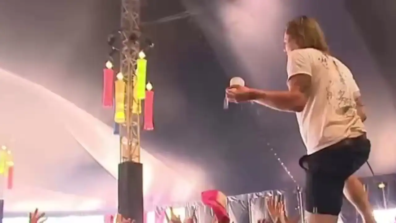 На концерте произошло нечто невероятное: исполнитель, демонстрируя удивительную ловкость и смелость, поймал стаканчик с пивом прямо в воздухе. При этом он стоял на руках толпы восторженных фанатов.