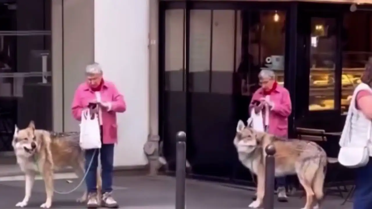 В Париже произошла необычная встреча: пожилая женщина прогуливалась с огромным волком на поводке. Сначала прохожие удивились, но вскоре поняли, что это не просто дикая животина, а любимец бабушки.