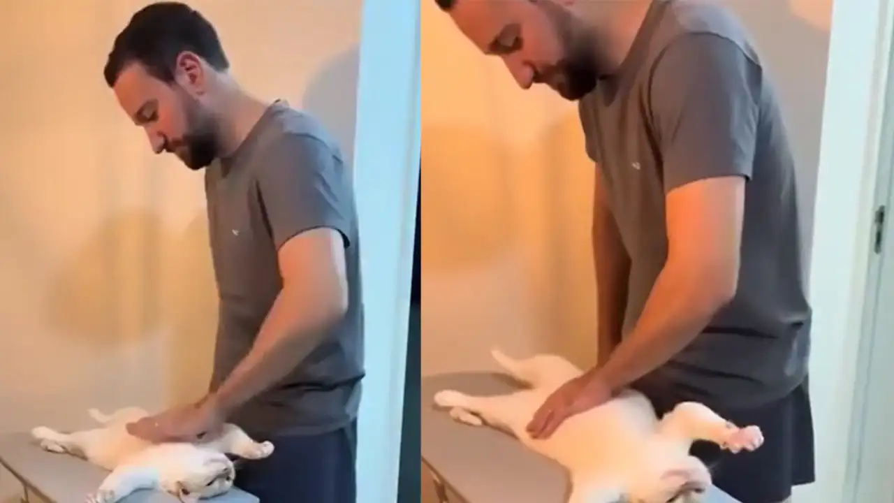 Коты давно доказали, что они — мастера находить самые неожиданные применения привычным вещам. В этом видео один такой усатый изобретатель решил, что гладильная доска — это идеальное место для отдыха. Он улегся на доску, вытянул лапы в стороны и с видом полного блаженства подставил пузико под поглаживания хозяина.