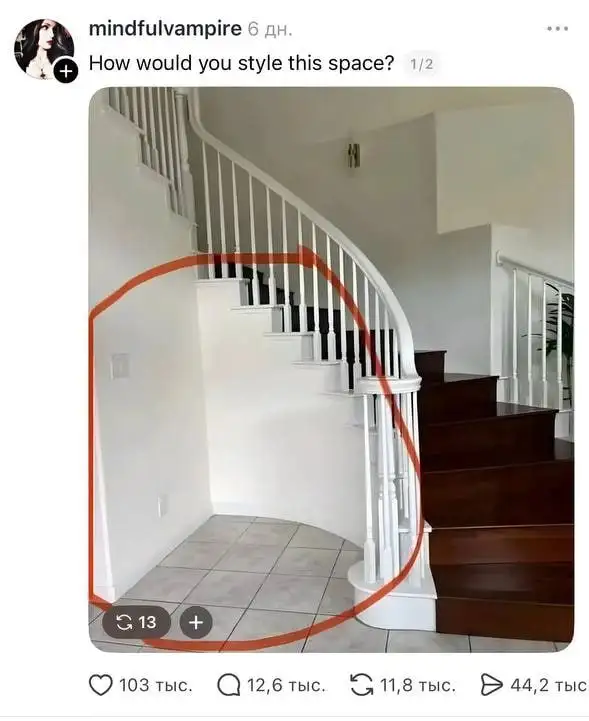 Попросишь иногда в интернете совета по обустройству дома — и получишь целый спектакль. Вот и в этот раз девушка хотела просто организовать пространство под лестницей, а в ответ ей насоветовали открыть там пункт выдачи заказов, посадить консьержа, поставить «тот самый» стул с вещами и не забыть про воспитательный уголок для детей. Традиционное соревнование на самый абсурдный ответ — куда же без него.
