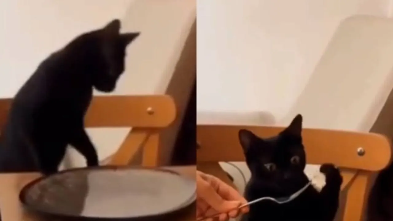 И взрослые, и дети знают, что за столом себя нужно очень хорошо вести. Нельзя кричать, опрокидывать еду и лезть шаловливыми лапками в тарелку, как делает котофей из этого видео.