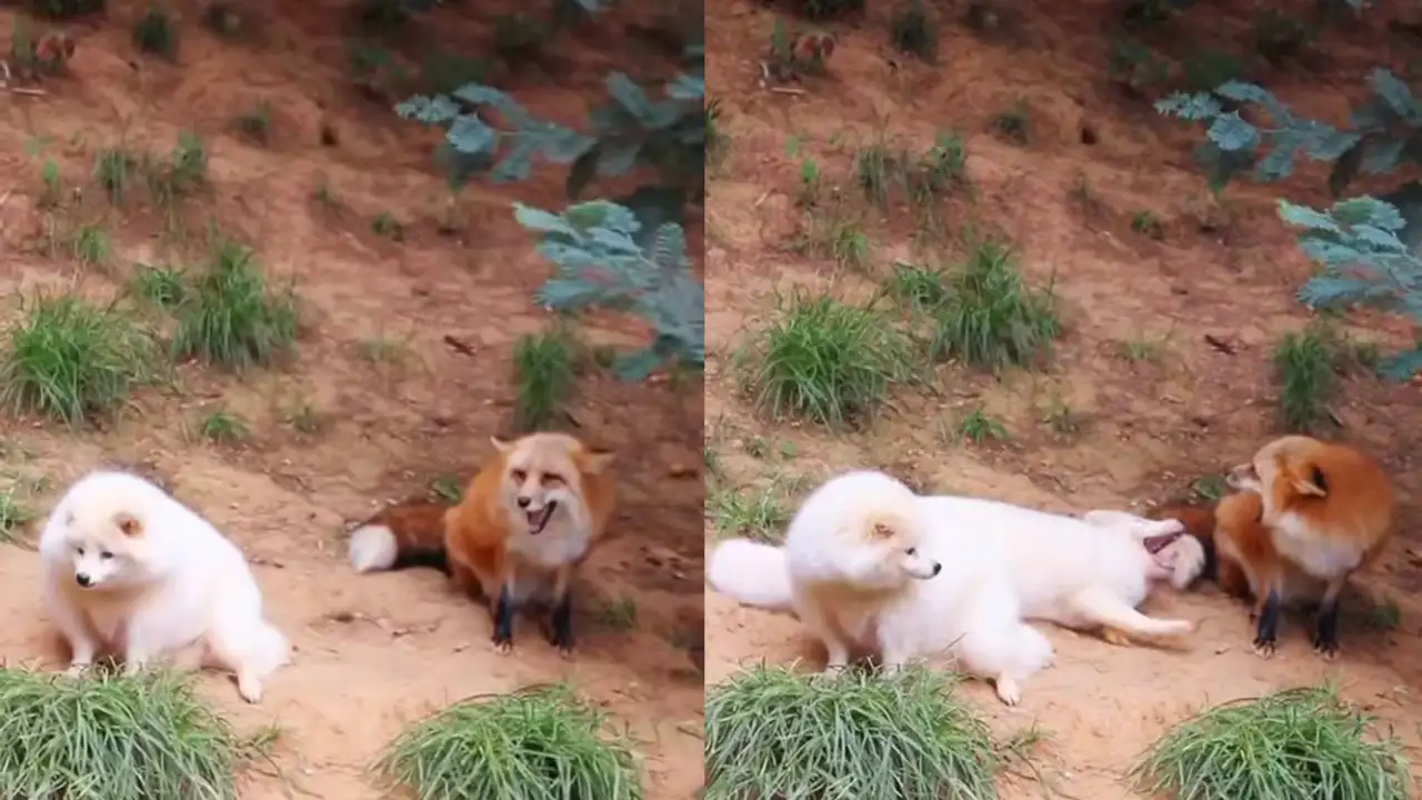 Лисы-плутовки собрались вместе и, казалось, кто-то рассказал им отличную шутку. Они весело хихикали и смеялись, а у белой плутовки даже подкосились лапки от смеха. Каждое их движение было полным игривости и задора, словно они делились каким-то секретом.