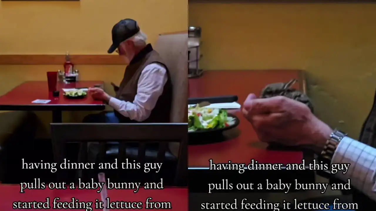 Это видео — воплощение нежности и уюта. На нем запечатлен трогательный момент: пожилой мужчина, которого хочется назвать дедулей, ужинает в компании крохотулечного кролика. Маленький пушистый комочек сидит рядом с ним на столе, словно полноправный член семьи, и даже разделяет трапезу.