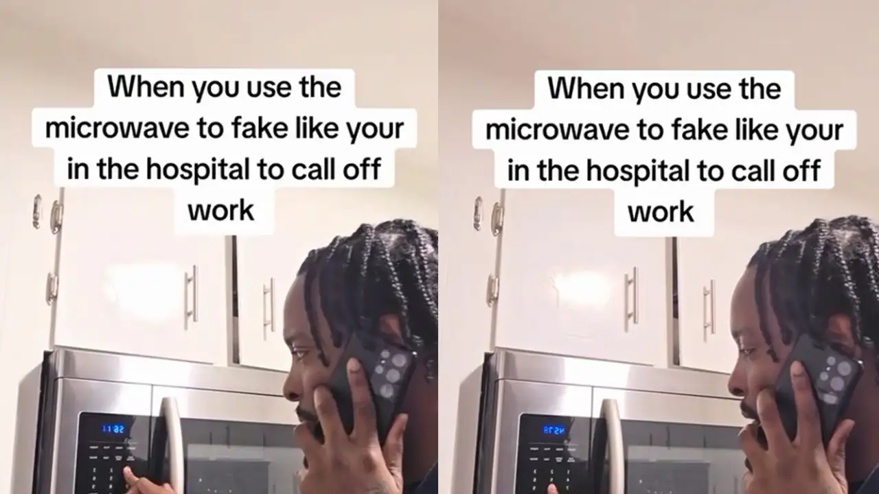 Мужчина делится лайфхаком по использованию микроволновки для создания фона больничного шума — идеальный способ отпроситься с работы. Он показывает, как легко можно обмануть коллег и начальство с помощью простых звуков.