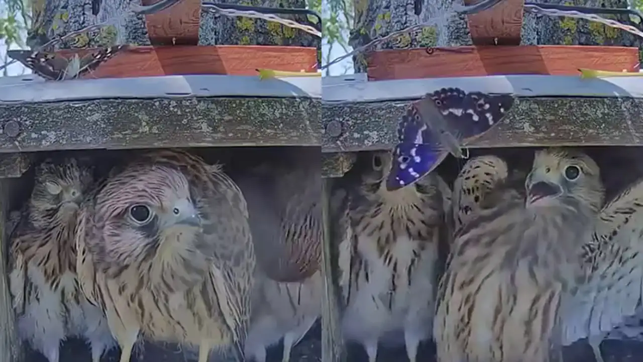 Маленькая бабочка, осмелившаяся приблизиться к их гнезду, спровоцировала целую бурю эмоций у пернатых обитателей. Их шок, смешанный с легким испугом, превращает обыденное событие в забавное зрелище, раскрывающее чувствительность этих хищников.