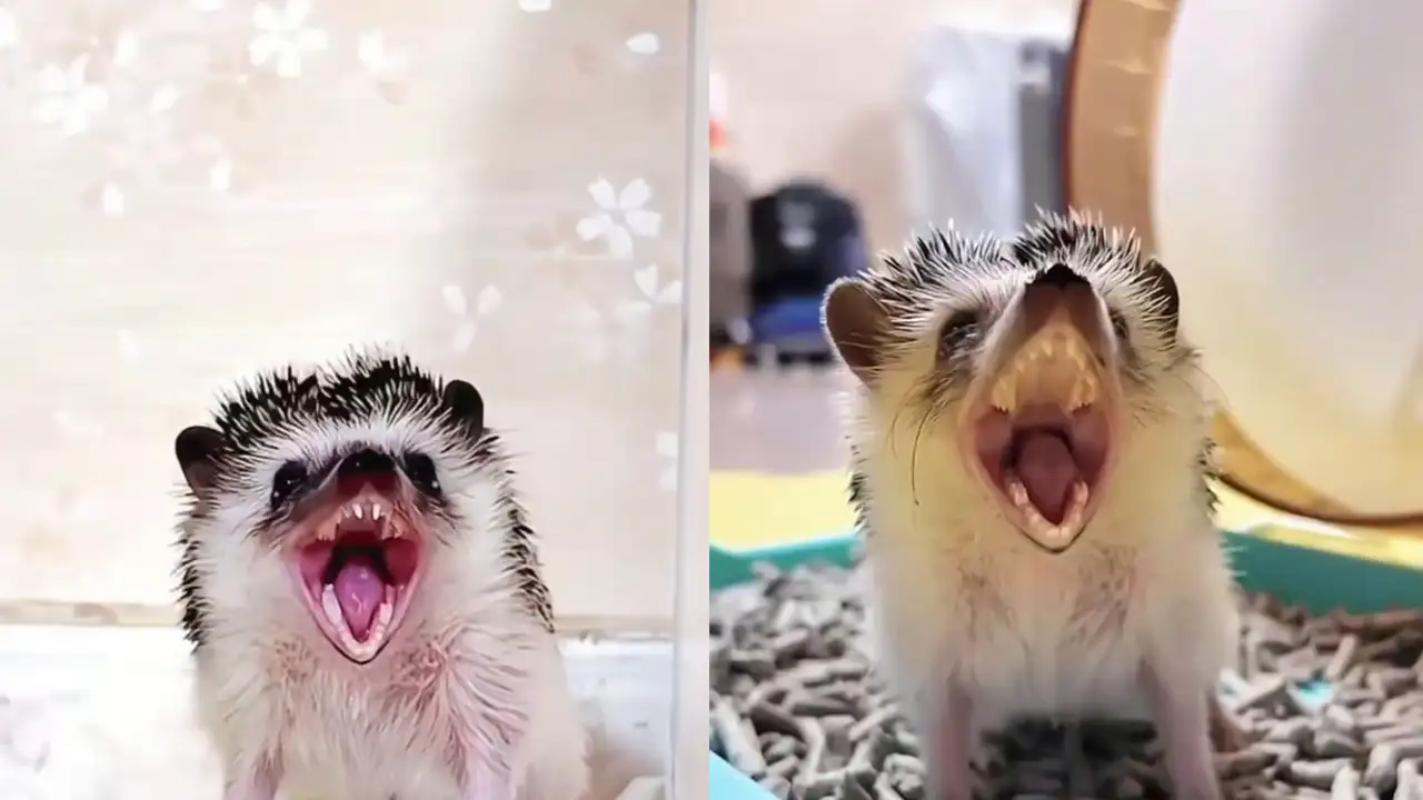 Ежики на видео показывают свою истинную натуру: они зевают, демонстрируя не только клыки, но и то, что милые создания могут быть не такими безобидными, как кажутся.