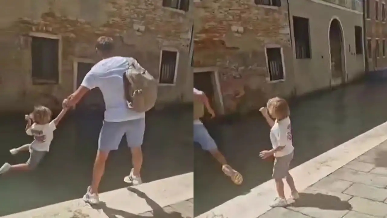 На этом видеоролике запечатлен веселый момент прогулки отца с сыном по пристани. Отец, желая развлечь ребенка, начинает кружить его над водной гладью, создавая захватывающий аттракцион.