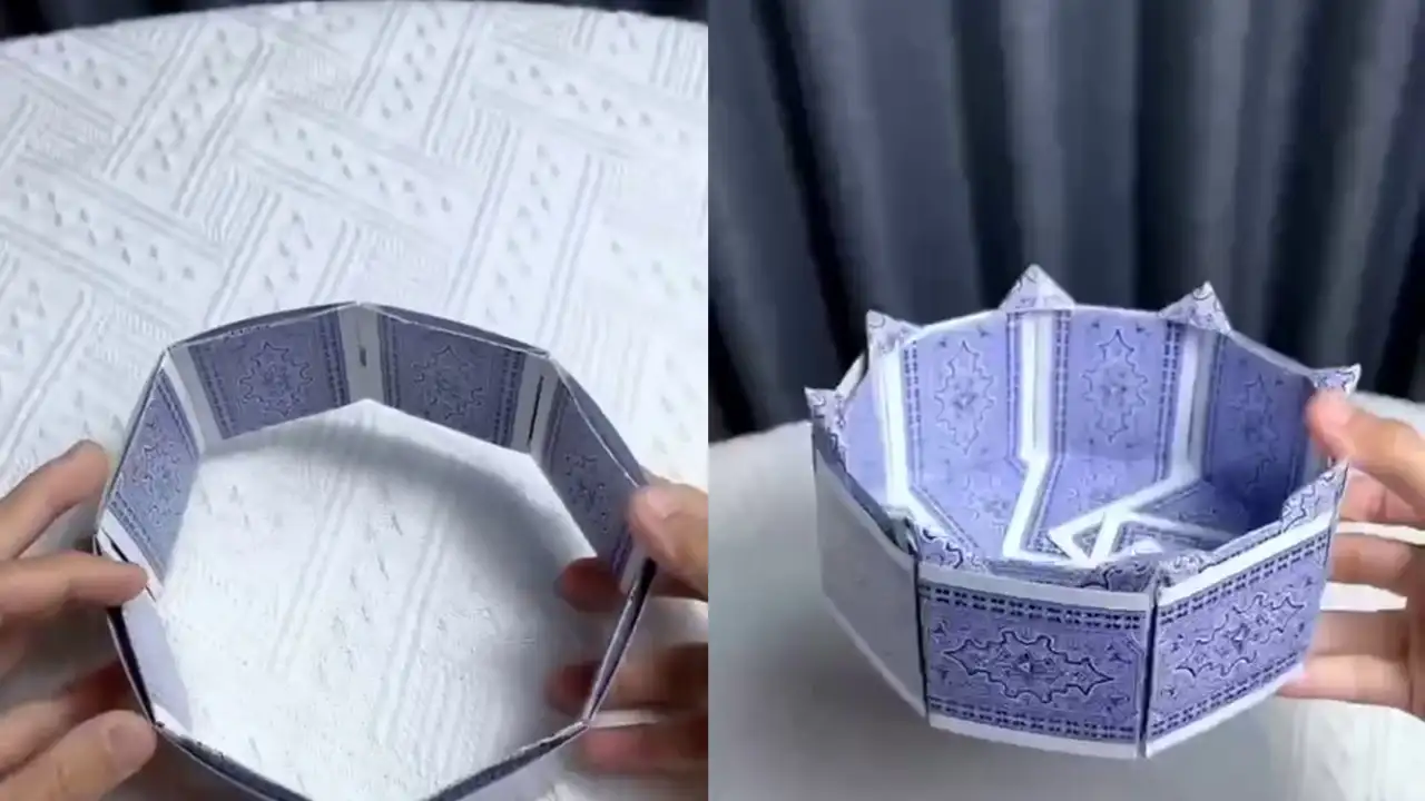 В этом видео показывают, как создать стильную вазу для фруктов из колоды игральных карт. Сначала автор демонстрирует процесс разборки колоды и выбор нужных карт. Затем шаг за шагом он показывает, как складывать карты, чтобы получилась оригинальная форма вазы.