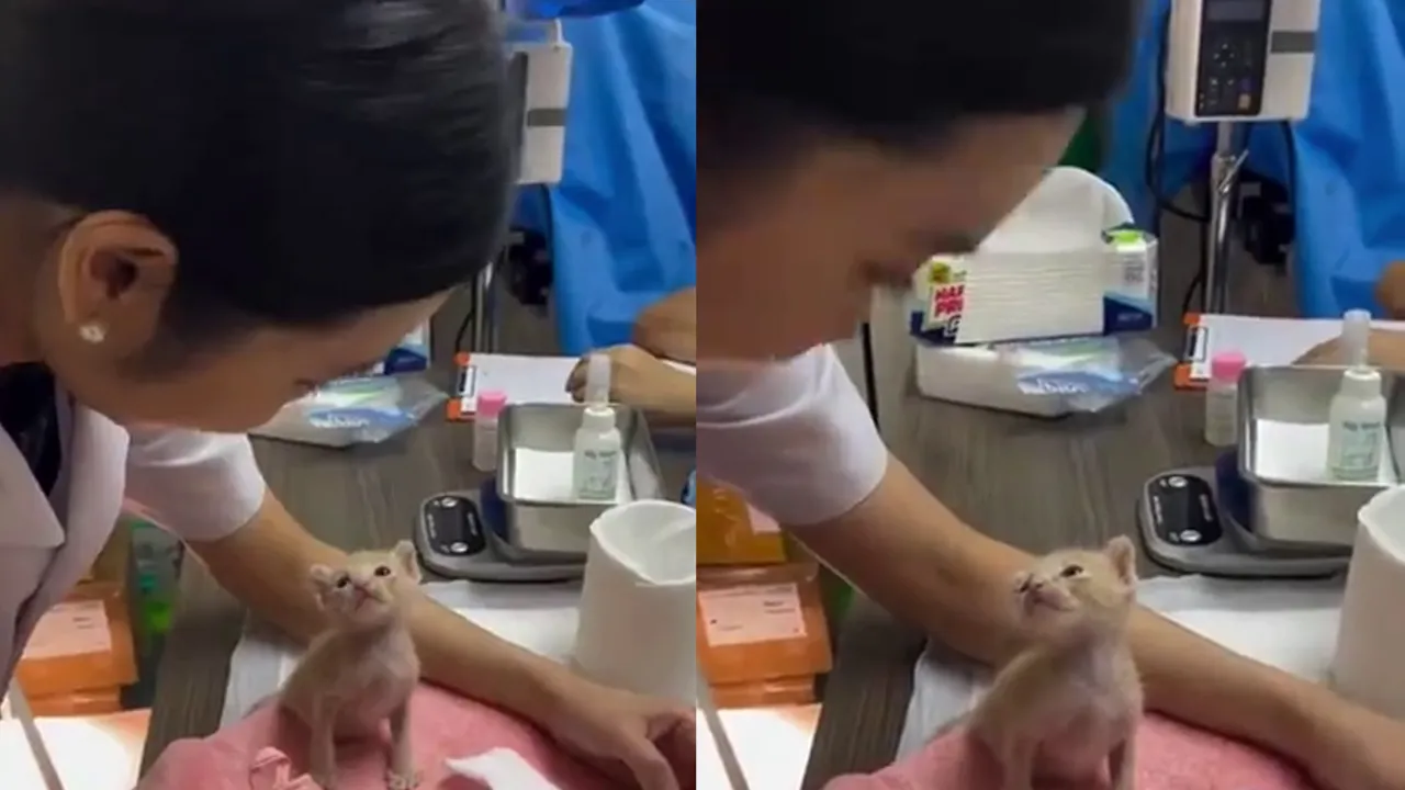 На этом милом видео запечатлен крошечный котенок, который внимательно слушает рекомендации ветеринара. Его любопытные глазки и доверительное выражение лица вызывают умиление у зрителей.
