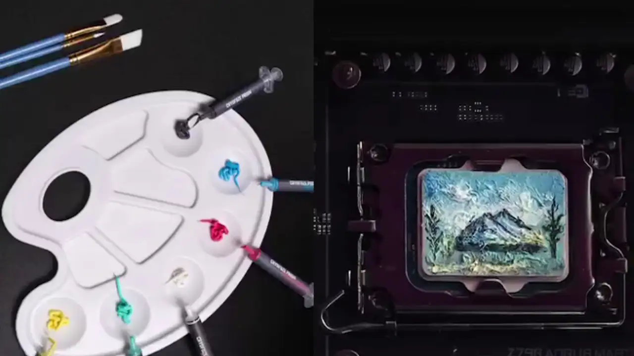 Искусство сборки компьютера может быть не только техническим процессом, но и настоящим шоу! В этом видео демонстрируется необычное нанесение термопасты на процессор: мастер творит настоящие шедевры, создавая узоры и формы с помощью пасты.