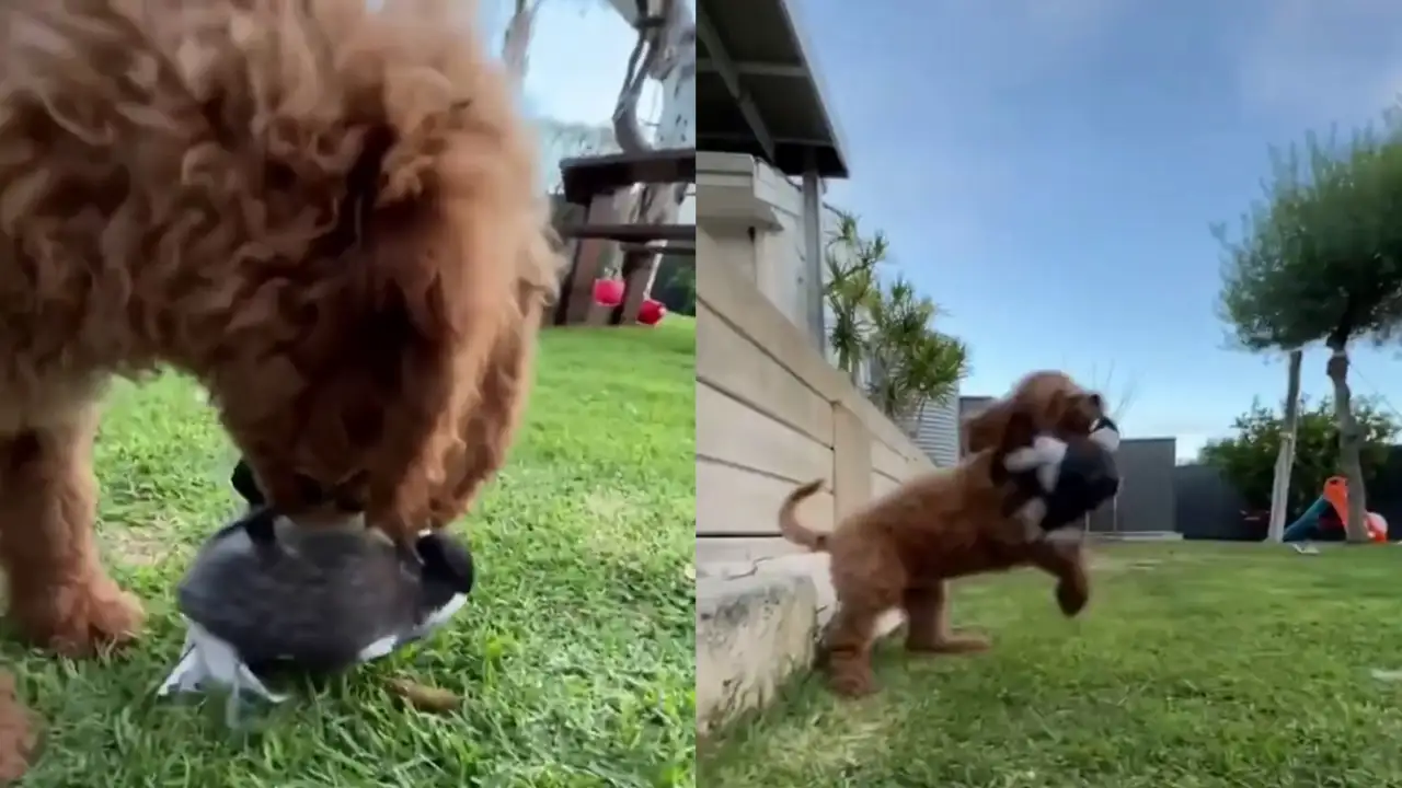 На видео сорока ведет себя так, словно не осознает своей пернатой природы. Она отчаянно борется за вкусняшку с псом, словно пытаясь доказать свою правоту.