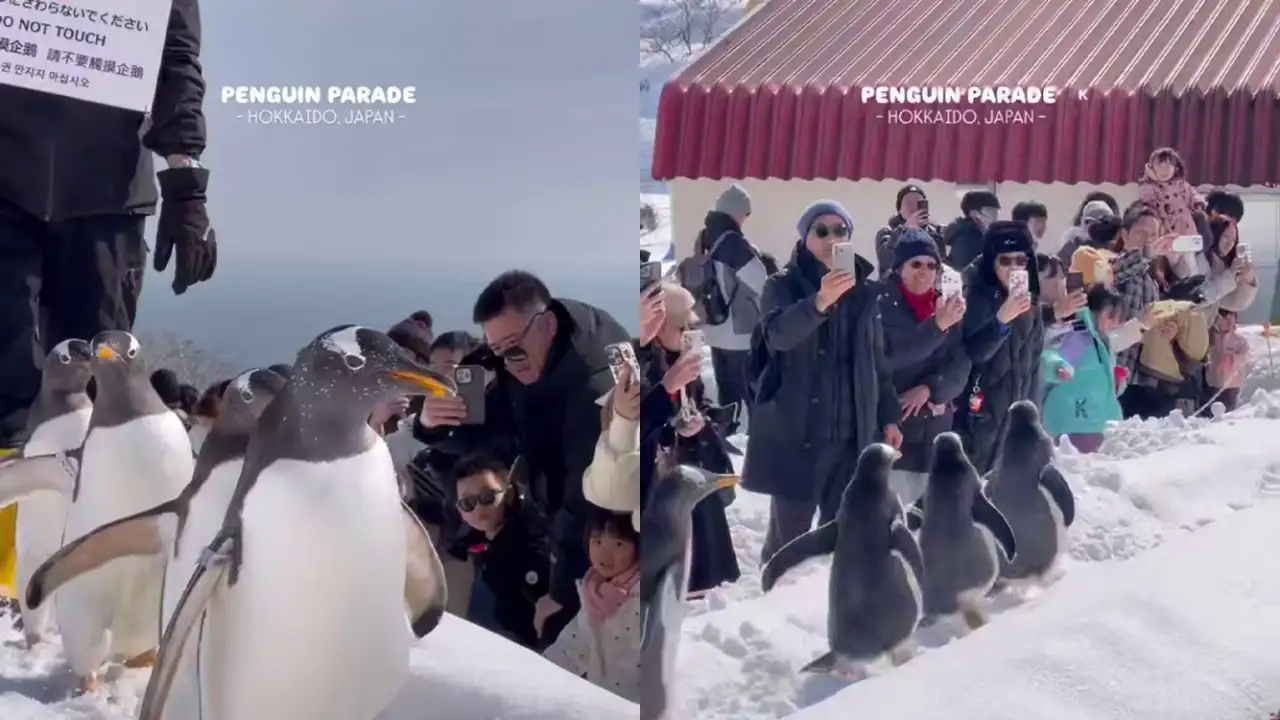 Парад пингвинов в японском Хоккайдо — это зрелище, которое вызывает улыбку у всех зрителей. Пингвины гордо шагают по улице, словно настоящие звезды шоу-бизнеса. Их забавные движения и милые лица делают видео настоящим хитом.