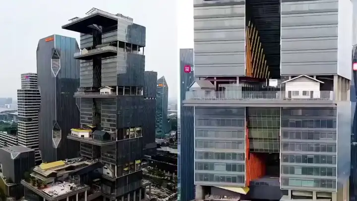 На видео сняли небоскреб с построенными прямо внутри него домиками в Гуанчжоу