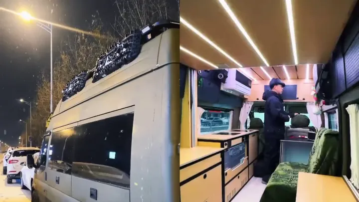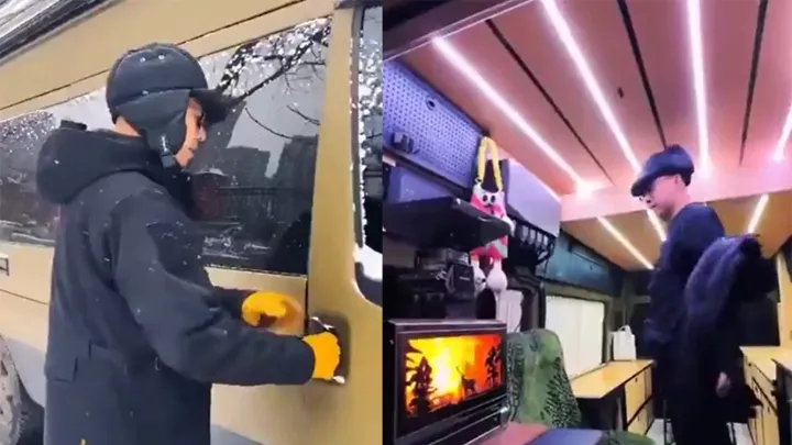 Мужчина из Китая обустроил для себя целую квартиру в микроавтобусе