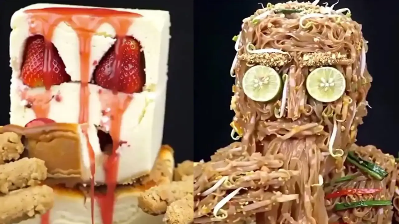 Порой, когда нейросети дают волю фантазии, люди получают еще один повод пожалеть о собственных идеях. Например, этот ролик — результат того, что искусственный интеллект всерьез воспринял фразу «Ты то, что ты ешь» и сотворил жутковатую галерею живых десертов и закусок. Чизкейковый человек с аппетитом уничтожает своих сородичей, лососевый гурман набрасывается на куски рыбы, а вафельное существо самозабвенно хрустит вафлями с сиропом.