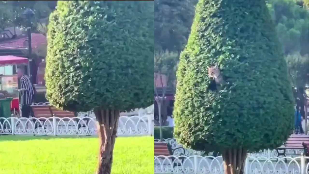 На этом видео запечатлен редкий вид белки, который на самом деле оказывается кошкой, притаившейся на дереве. Кот, с его грациозными движениями и игривым характером, наблюдает за окружающим миром, пытаясь остаться незамеченным.