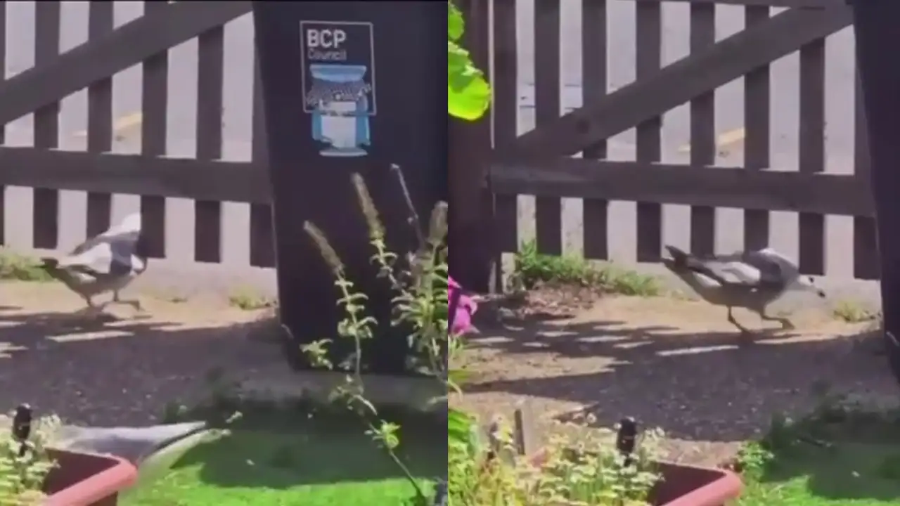 Объевшаяся чайка столкнулась с непреодолимым препятствием в лице небольшой калитки.