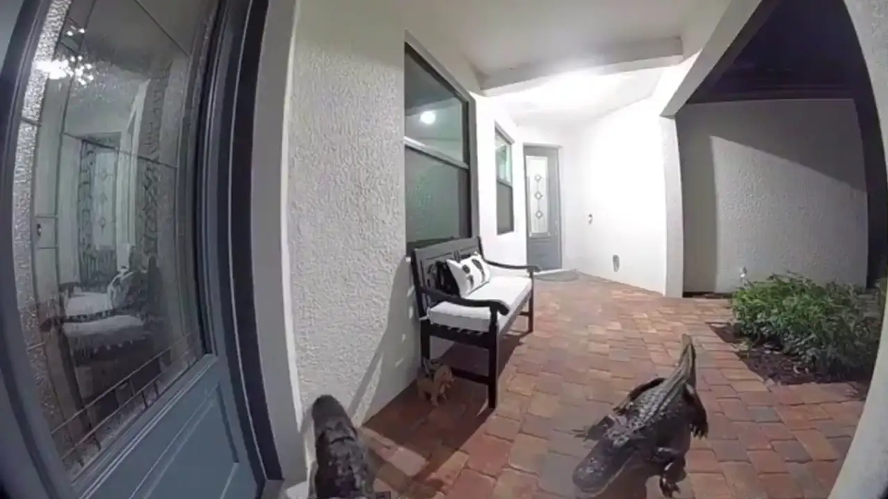 В этом видео зрители становятся свидетелями необычного ночного происшествия во Флориде. Аллигаторы, словно настоящие соседи, решают наведаться к людям и даже звонят в дверь! Непонимание и шок хозяев, а также реакция рептилий создают комичную атмосферу.