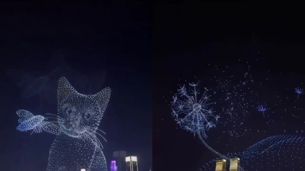 Ночное небо китайского мегаполиса Чунцин стало холстом для по-настоящему волшебного зрелища. Сотни, а возможно и тысячи, светящихся точек поднялись в воздух, чтобы сформировать нечто удивительное — гигантские фигуры котов и не только, парящих среди звезд.
