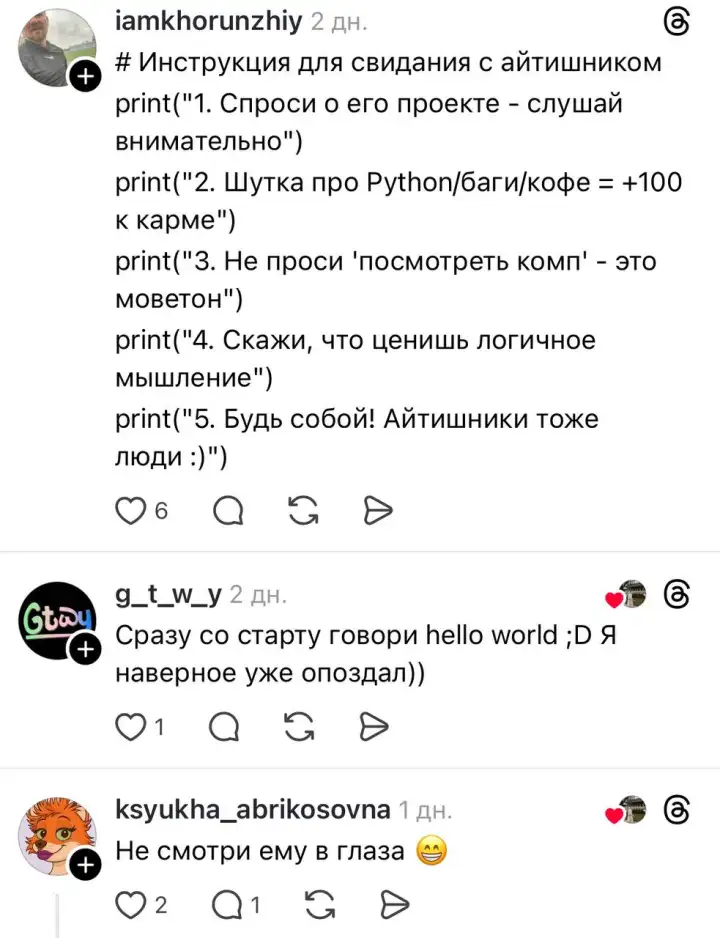 Девушка спросила у интернета, как произвести впечатление на айтишника, и этот пост превратился в масштабный краудсорсинговый проект.