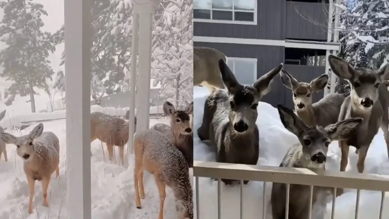 На видео олени подходят к дому человека и любопытно выстраиваются вокруг забора. Их грациозные движения и вопрошающие взгляды создают атмосферу умиротворения и красоты природы. Зрители могут наблюдать за тем, как олени взаимодействуют друг с другом и исследуют окружающее пространство.