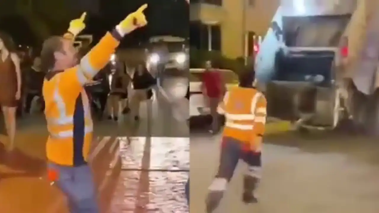Мусорщик во время своей работы неожиданно попал на уличный праздник и не растерялся. В видео он танцует среди людей, наслаждаясь моментом веселья и праздника.