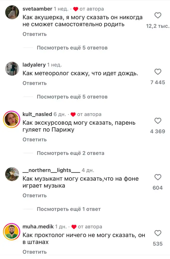 Надо ли говорить, что видео очень быстро стало вирусным. Но не благодаря научной ценности, а благодаря комментариям. И вот тут начался настоящий праздник диванной экспертизы. Пользователи, вдохновленные проницательностью доктора, ринулись делиться своими столь же глубокими и, главное, полезными наблюдениями.