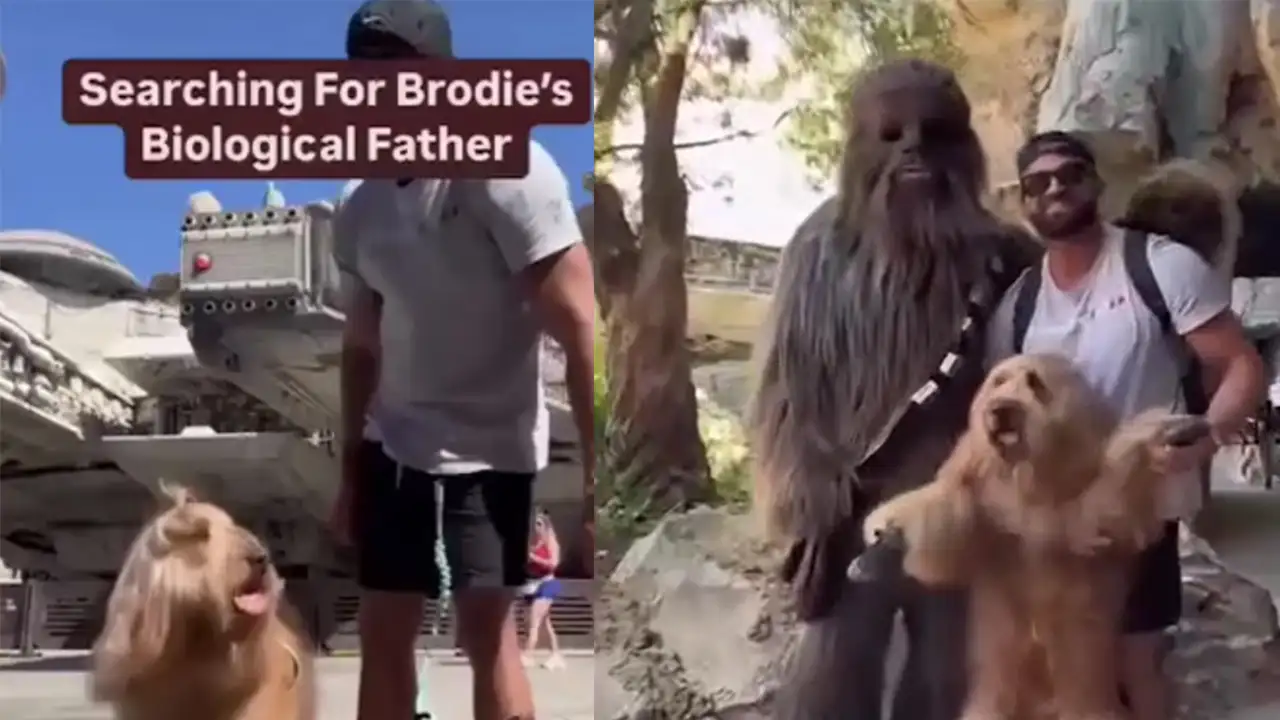 Косматый пес-блогер по кличке Броди, очень похожий на Чубакку из «Звездных войн», отправился в тематический парк развлечений, чтобы разыскать своего «звездного папашу». Хозяин, явно позабавленный их сходством, решил устроить семейную встречу галактического масштаба. Когда Броди наконец наткнулся на парня в костюме Чубакки, его хвост закрутился с энергией турбодвигателя.