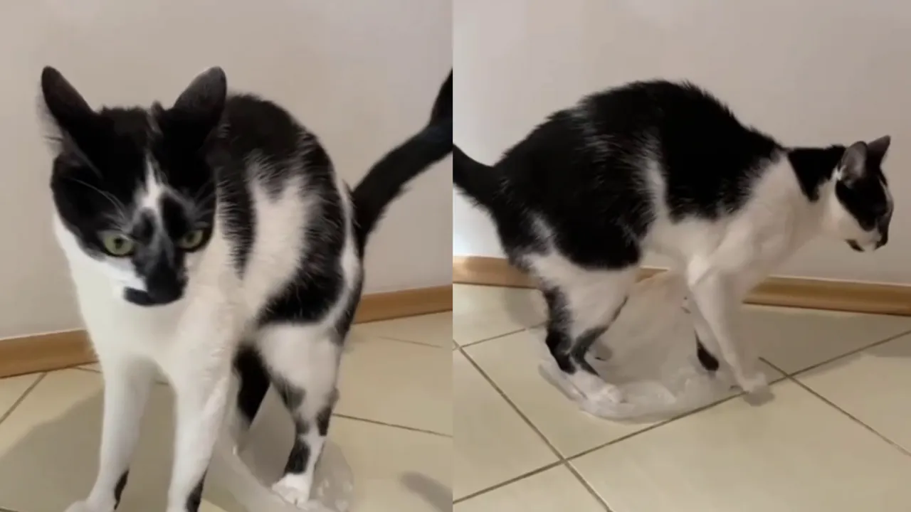 Вот и кот из этого видео обнаружил у пакета веселое свойство — шуршать. Поэтому он не собирается оставлять его в покое, пока на шум не сбегутся все соседи.