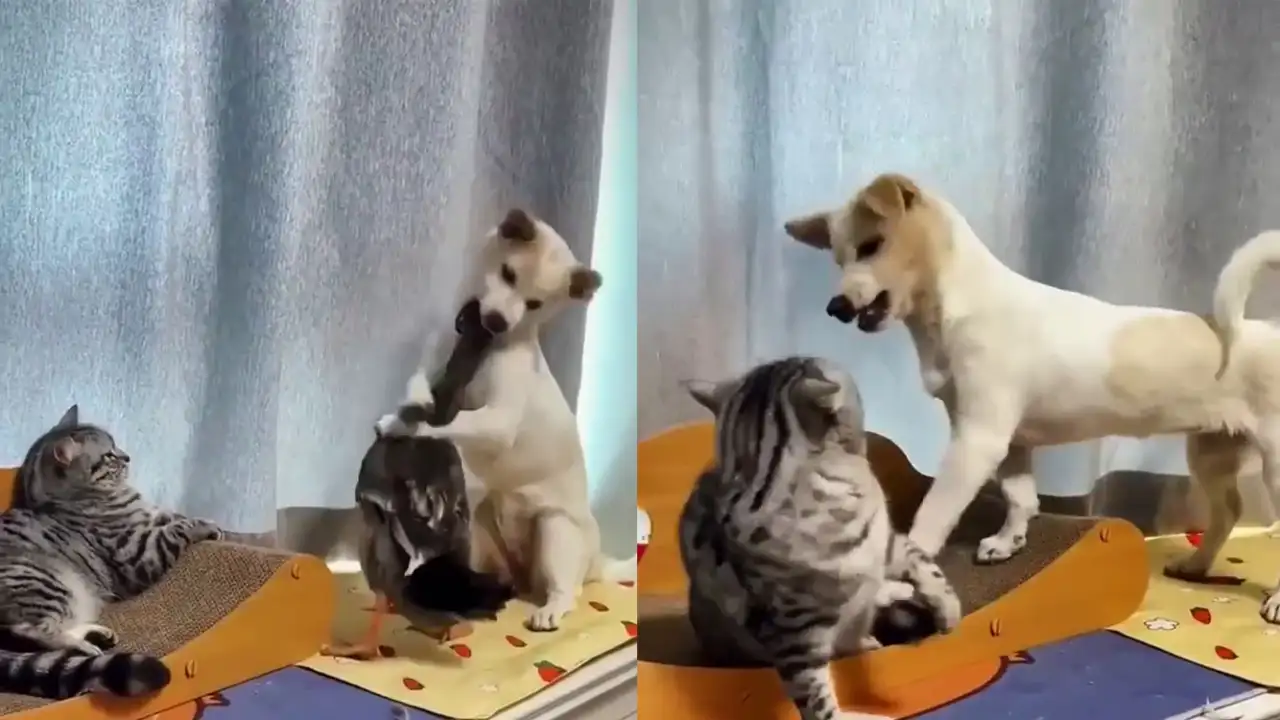 Этот маленький хулиган продемонстрировал, как легко можно посеять раздор, вызвав цепную реакцию конфликта между домашними питомцами.