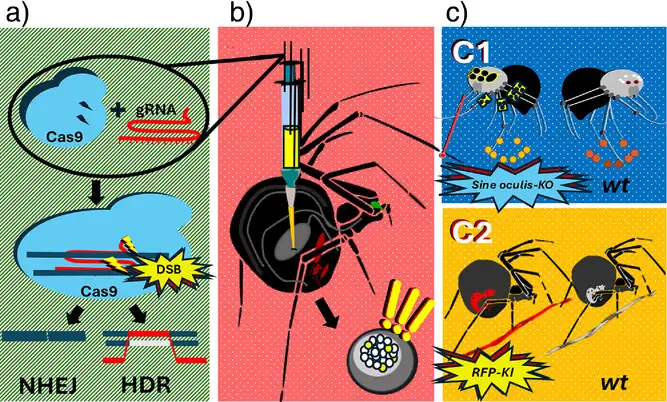 Процесс микроинъекции был непростой задачей. Он включал анестезию пауков с помощью CO2, чтобы предотвратить движение во время процедуры, а затем самок свели с самцами того же вида. Потомство в итоге оказалось вполне жизнеспособным и начало прясти шёлк, пропитанный красный белком, а это доказывало, что редактирование генов успешно закрепилось.