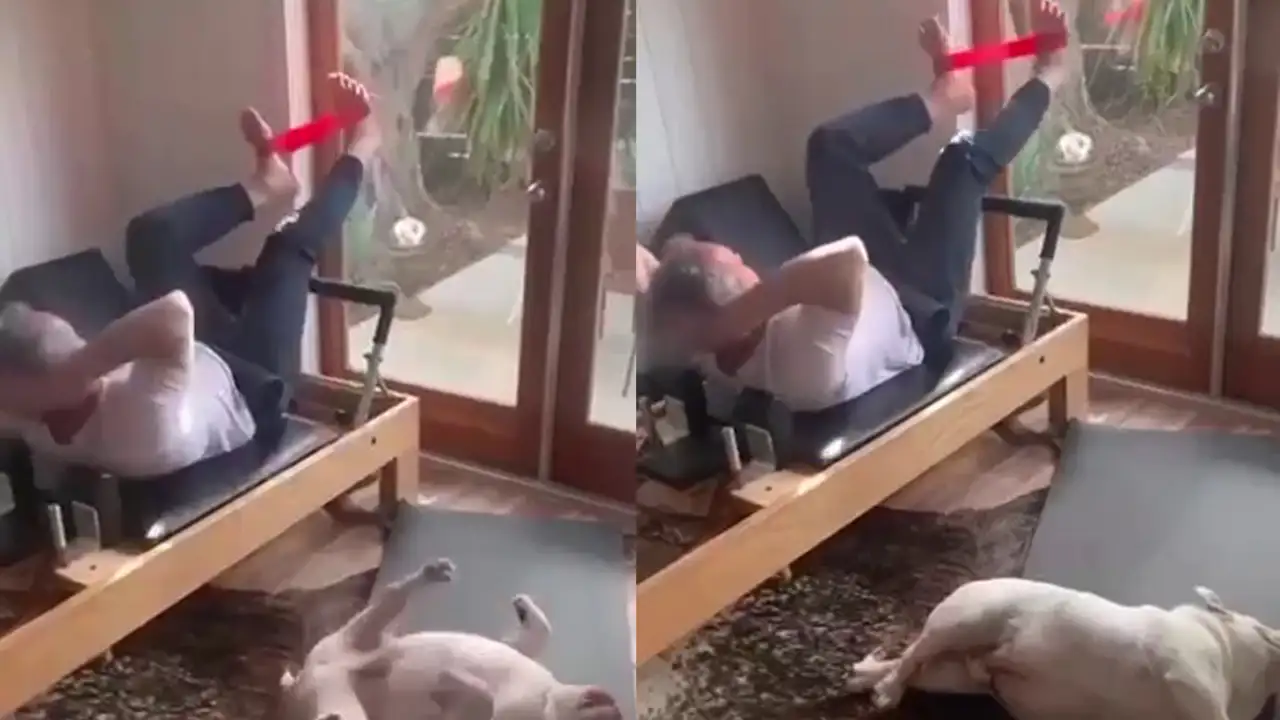 Пес решает поддержать хозяина во время занятий спортом и начинает повторять за ним все движения. Сначала все идет весело: они вместе делают упражнения и радуются активности. Однако вскоре пес теряет интерес к занятиям и просто валяется на полу, показывая всем своим видом: «Зачем так напрягаться?»