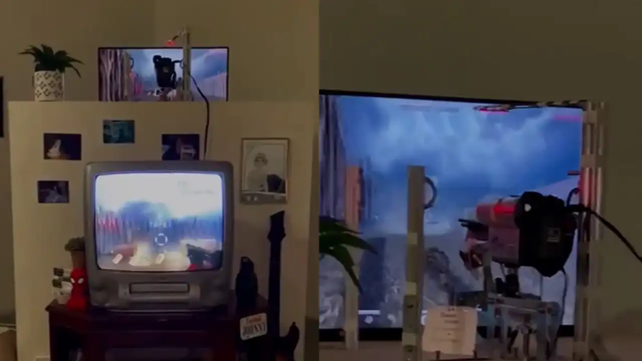 Один изобретательный любитель видеоигр решил перенести виртуальную реальность в настоящий мир, создав уникальный шутер. Он сконструировал хитроумное устройство, где миниатюрные ручки, держащие автомат, имитируют стрельбу.