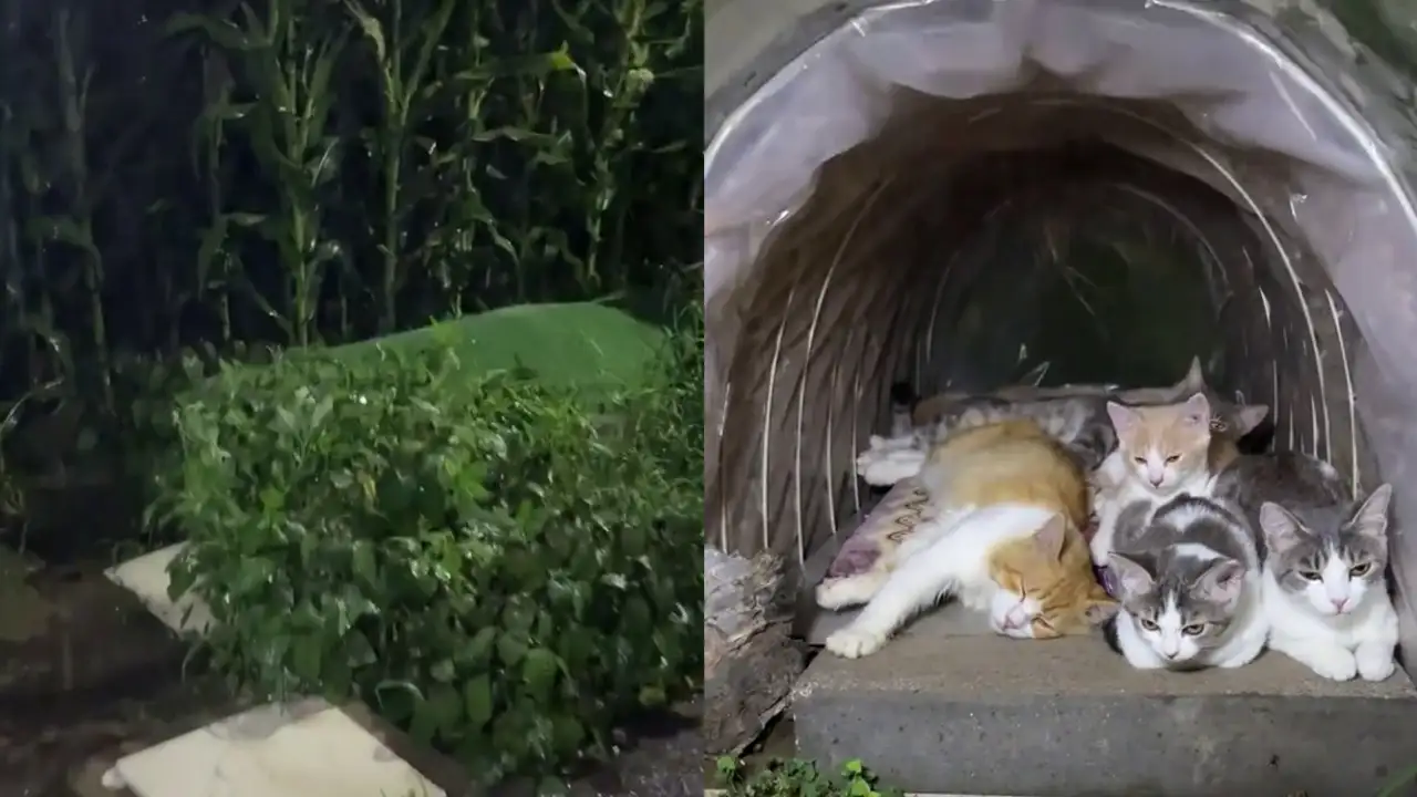 Котики с удовольствием прячутся там от непогоды, демонстрируя, как важно заботиться о комфорте животных и создавать для них безопасные и теплые уголки на природе.