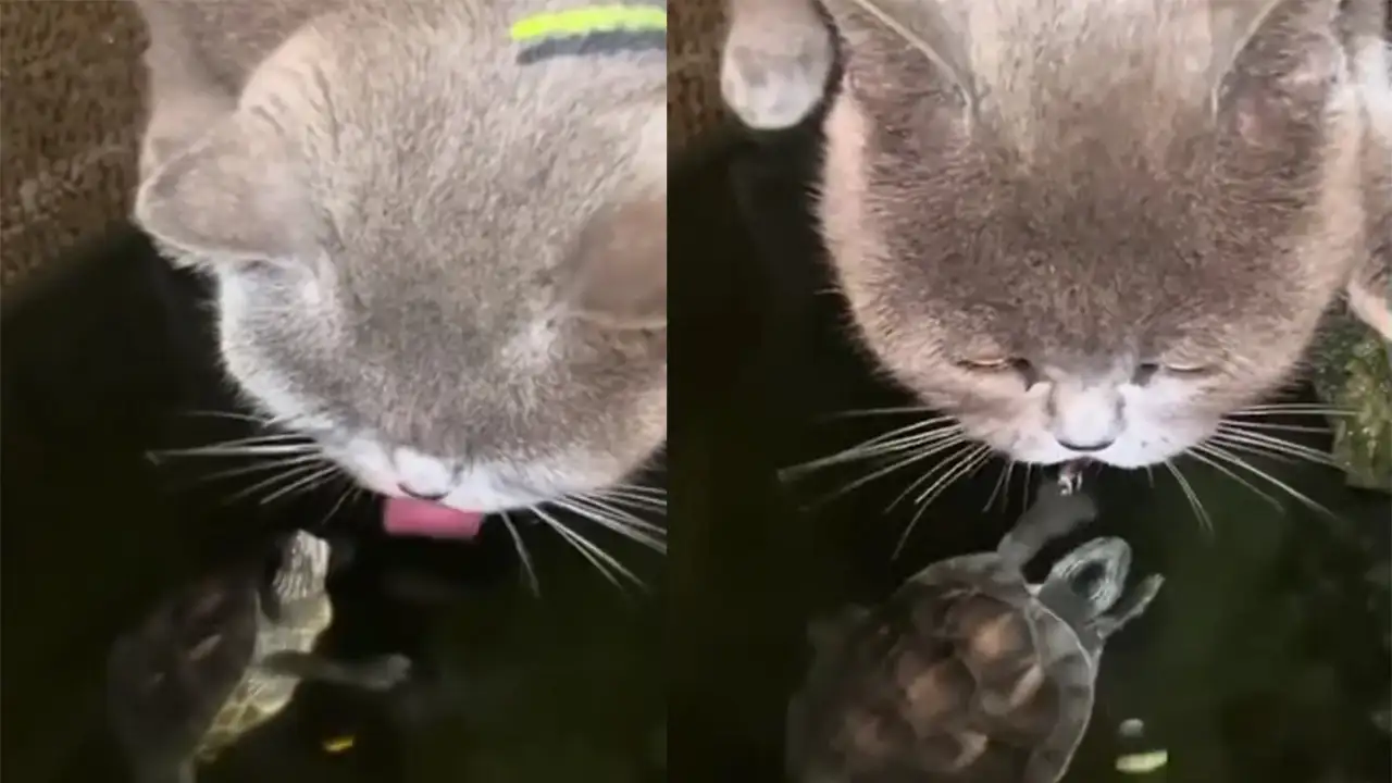 Котейка из этого видео с самоуверенностью императора решил, что черепаший прудик — его личный бар с бесплатной водой. Без малейшего стеснения он припал к водоему, превратив домик черепахи в свою поилку, пока хозяйка территории негодовала. Бедная рептилия, пылая праведным гневом, пыталась выдворить наглеца, яростно целясь в его морду и даже язык, но котофей невозмутимо игнорировал ее атаки.