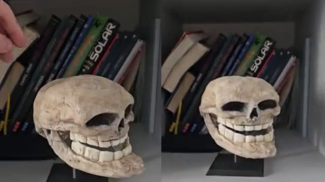 На видео появляется череп — предок знаменитого мема Trollface. Он выглядит забавно и немного зловеще одновременно.