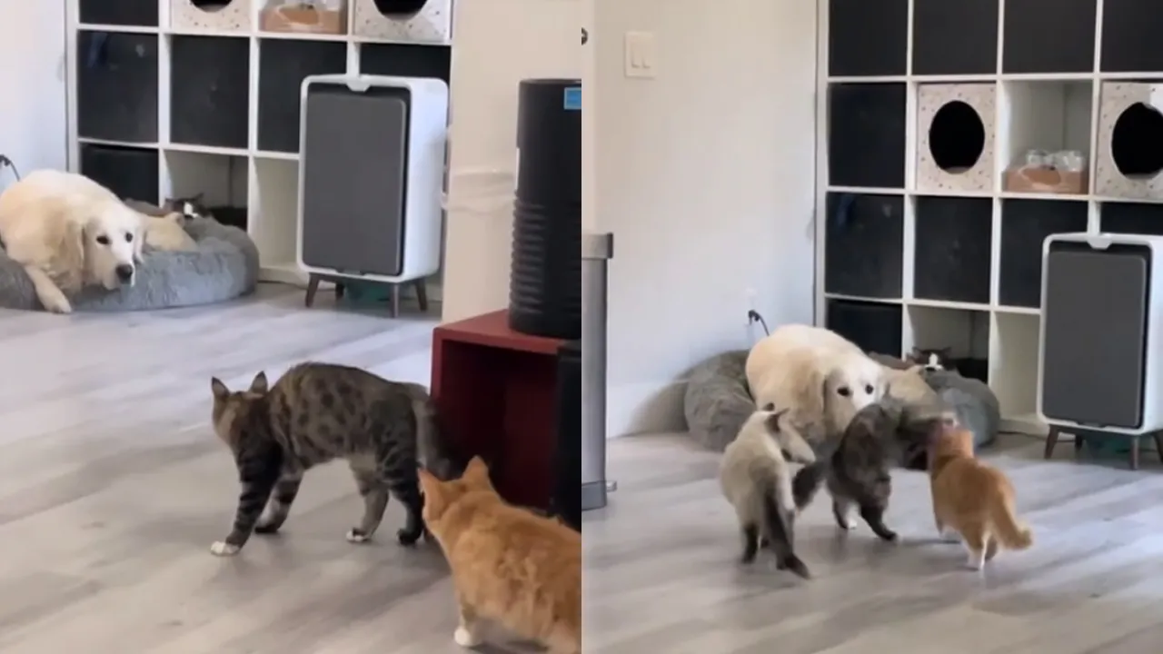 Как, например, кот-суетолог из этого видео, который решил устроить спокойно отдыхающему псу темную, подбив на это еще и своих товарищей. Хорошо, что сигналы из космоса неожиданно велели пушистому отступить, иначе покой мирного песика был бы нарушен.